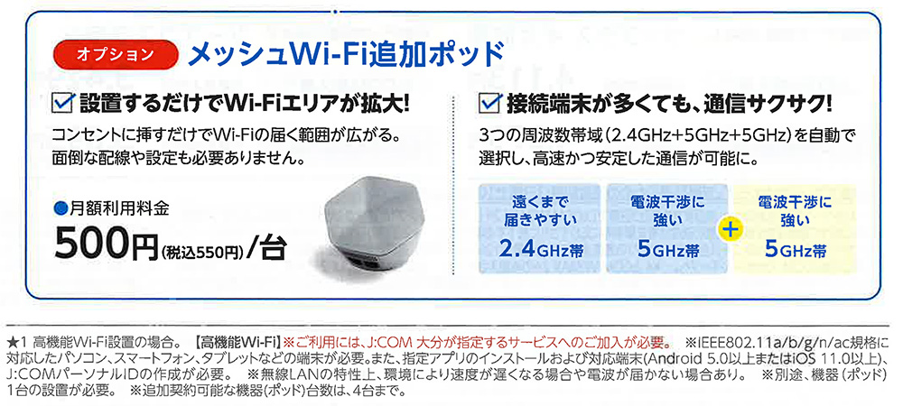 ※「オプション」…J:COM販売端末以外ではご利用できないサービスあり(オプション) かけ放題5分 月額利用料金500円(税込550円)/回線